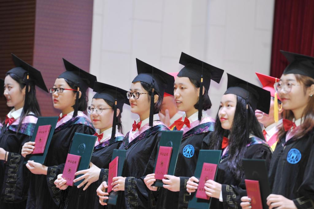 随后,2768名本科毕业生依次走上主席台,校领导为他们一一颁授毕业证书和学位证书,拨正流苏,并合影留念。