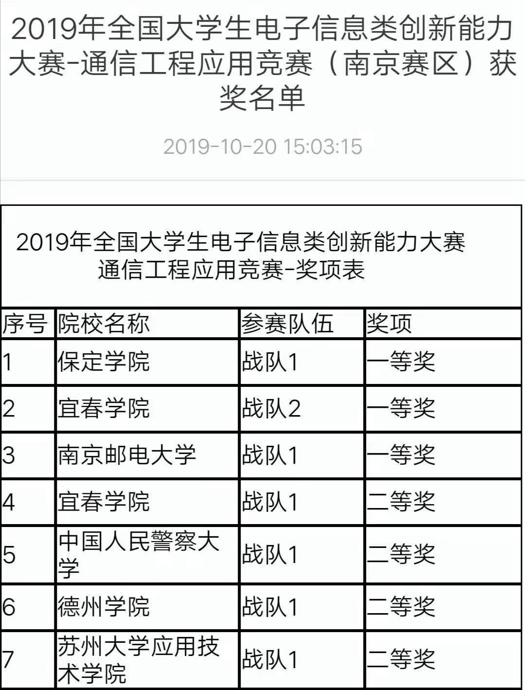 10月19日至20日,2019年全国大学生电子信息类创新能力大赛通信工程应用竞赛(南京赛区)在南京邮电大学举行,我校汽车与电子工程学院学生李剑峰、王凯宇组成的代表队(指导教师:王兆玮、金成),以良好的专业素养和出色的现场表现夺得第一名,顺利进入全国总决赛。