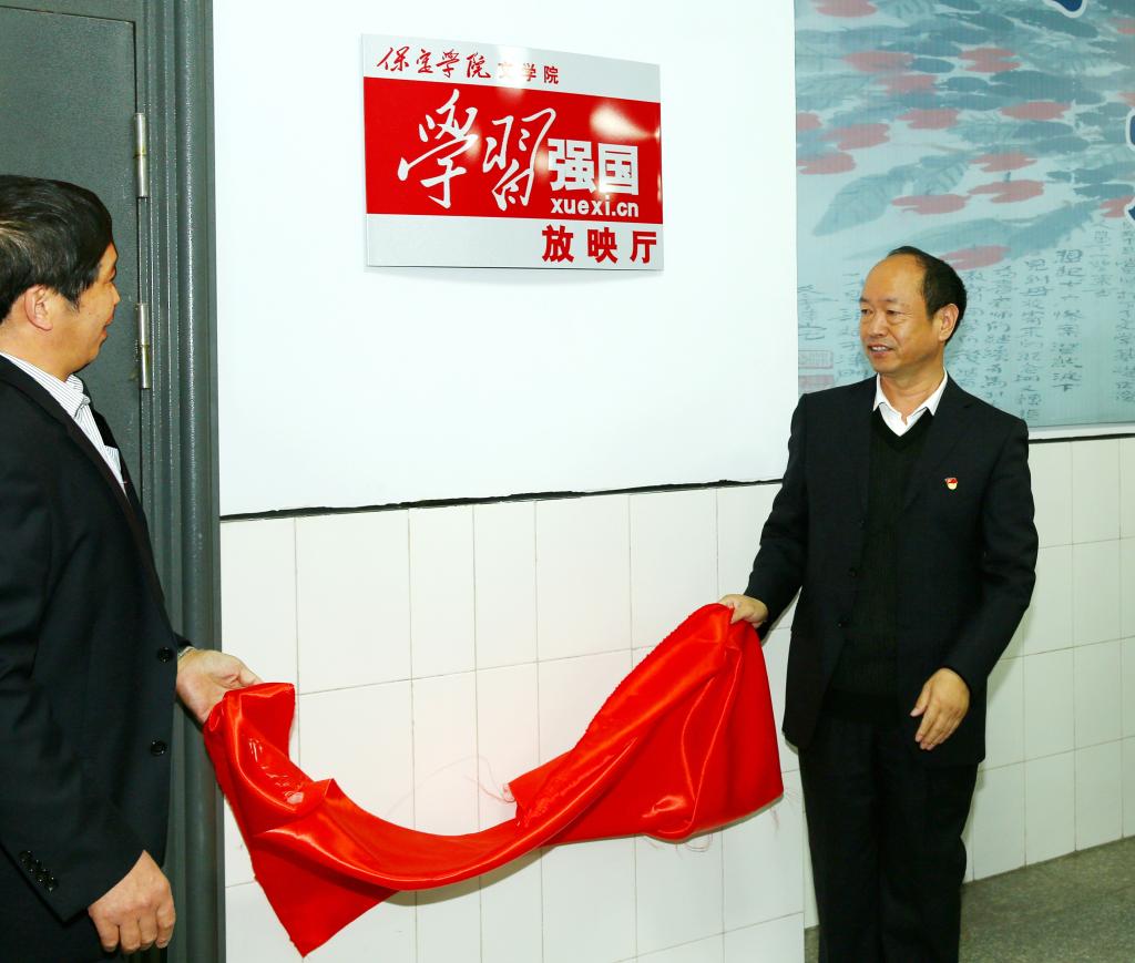 11月7日,保定学院“学习强国放映厅”正式挂牌,校党委书记胡连利亲自为放映厅揭牌,并兴致勃勃地与师生们一起观看影片。