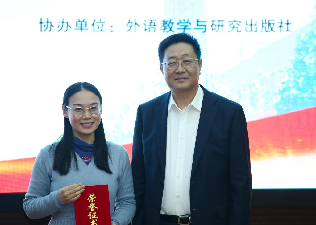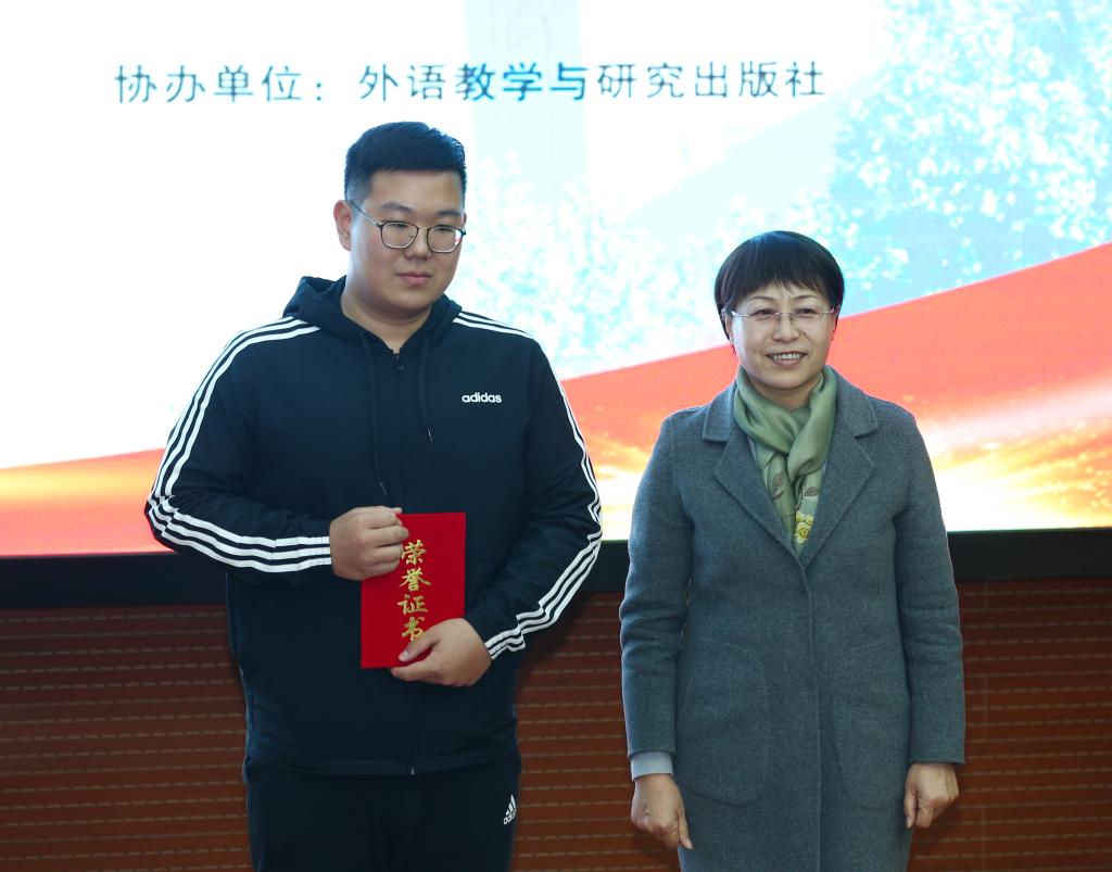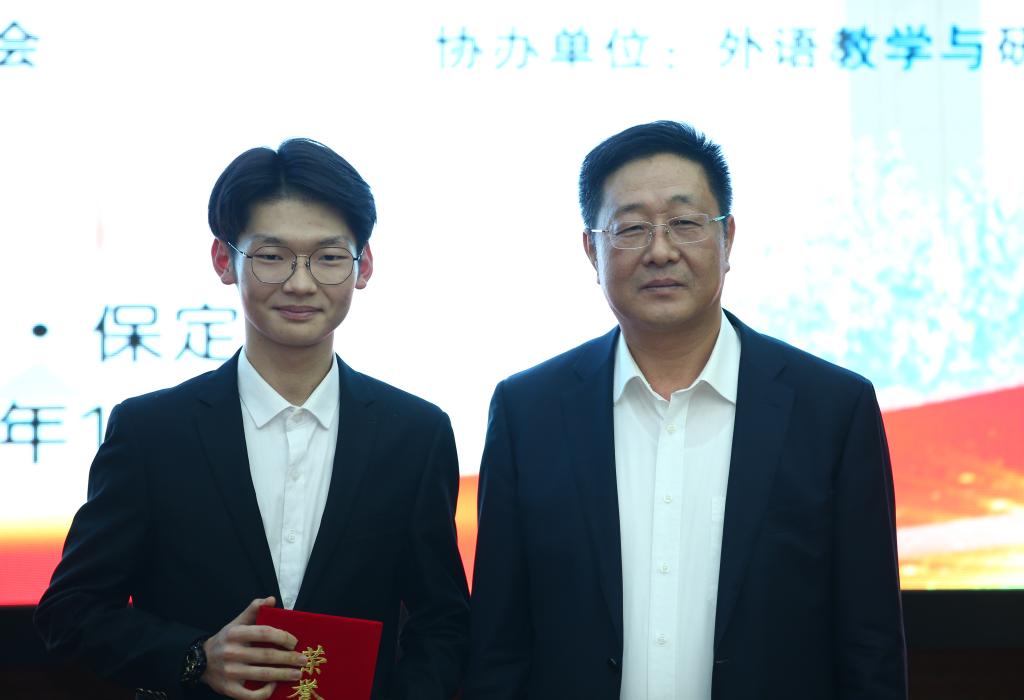 河北省高等学校外语教学指导委员会主任委员、河北省高等学校外语教学研究会会长李正栓为选手颁奖