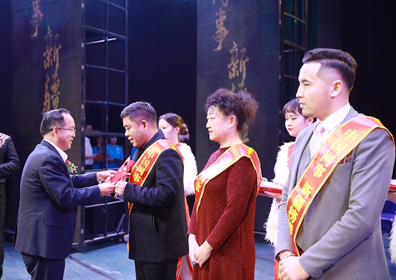我校西部支教群体代表辛忠起代表团队领取“新疆榜样”奖杯和证书
