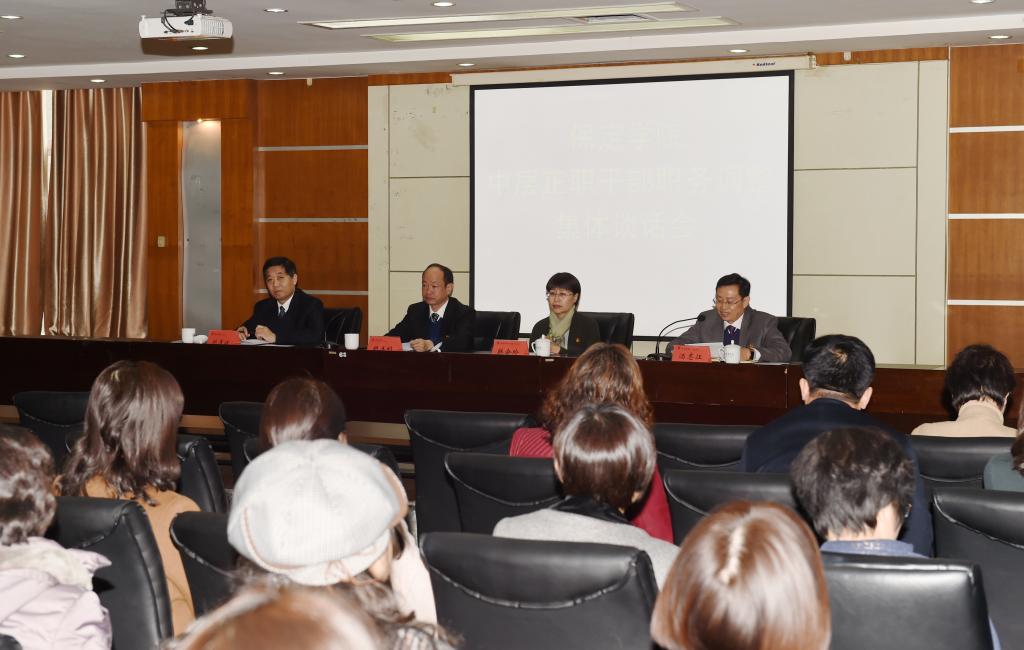 12月20日上午,我校在行政楼教工之家召开中层正职干部职务调整集体谈话会。校领导胡连利、韩会玲、刘清波、汤志江出席会议,全体中层干部参加会议。会议由校党委副书记、校长韩会玲主持。