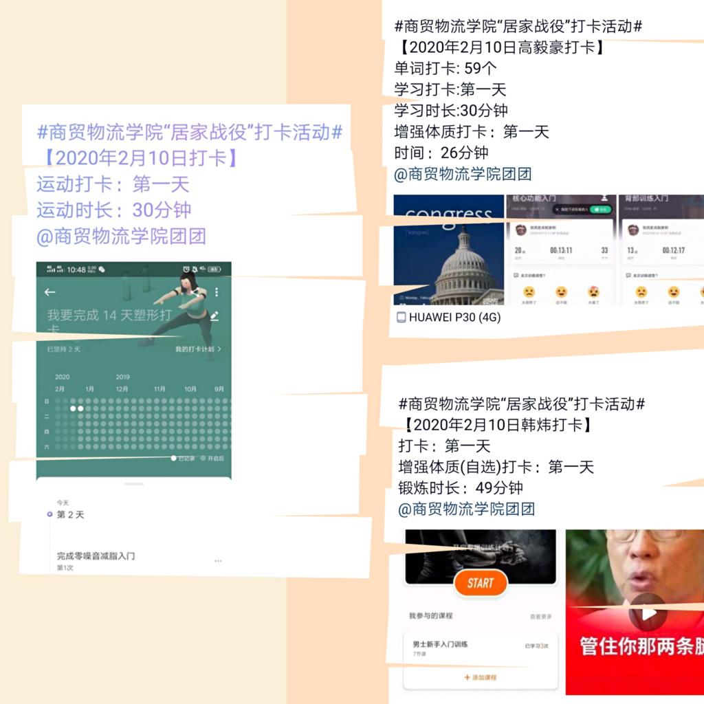 居家做好防护,学习正当其时。商贸物流学院号召学生们要宅出精彩、宅出意义,开展了丰富多彩的“居家战疫”展示活动,活动包括见字如面、与你共渡、体质训练、家务劳动等多种项目,学生们在老师的指导下,各展所长,互相鼓励,在网上花式晒照,合力谱写了特殊寒假的别样精彩。