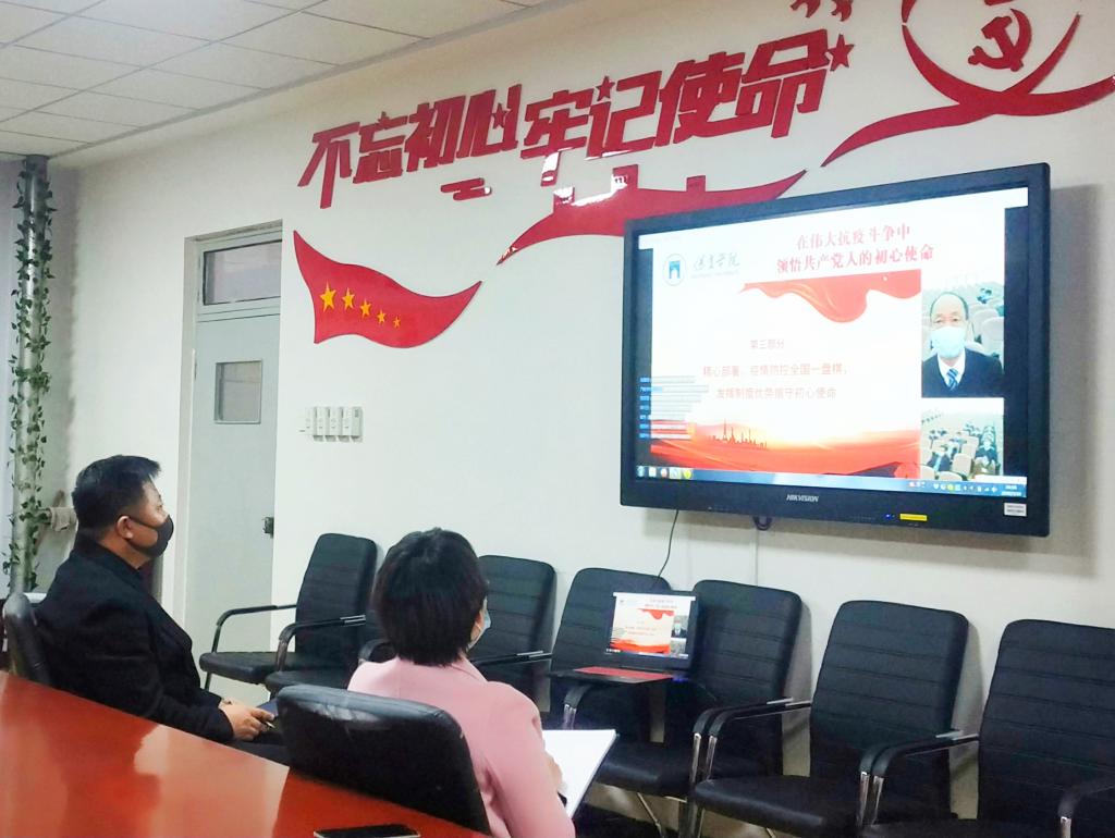 为认真落实《党委(党组)落实全面从严治党主体责任规定》和《2019-2023年全国党员教育培训工作规划》,把学习贯彻习近平新时代中国特色社会主义思想作为首要政治任务一以贯之,把党的思想建设作为基础性建设来抓,坚定理想信念,坚持思想建党、理论强党、从严治党,3月18日下午,一场线上党课在我校开讲。胡连利以《在伟大抗疫斗争中领悟共产党人的初心使命》为题,通过互联网上了一堂别开生面的线上党课。