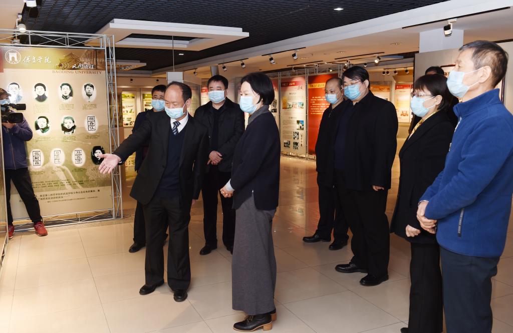 3月27日上午,市人大常委会党组副书记、市总工会主席、一级巡视员王惠欣到我校了解疫情防控和线上教学情况,慰问防控工作人员,并观看了专题片《到西部教书去》,参观了“理想的力量”保定学院百年办学史志影像馆和“红旗的召唤”西部支教主题展馆。