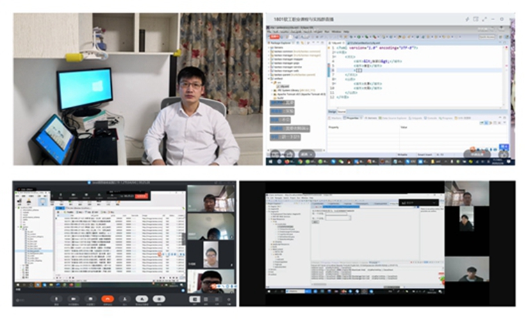 数据科学与软件工程学院车紫辉老师在开课前对雨课堂、超星学习通、腾讯课堂和钉钉等多个平台进行模拟测试,分析各个平台优缺点,结合所授课程特点,制定教学方案;通过教学平台统计数据掌握学生学习状况,及时调整教学计划或进度;根据课程性质,采用4学时直播共享电脑屏幕、消息面板、连麦及学生屏幕共享多种互动形式完成,2学时采用视频会议讨论本周课程知识点,通过共享学生电脑屏幕检查课程案例完成情况,并让完成情况比较好的学生进行成果交流分享,学生对车老师的线上教学模式给予了较高的评价。