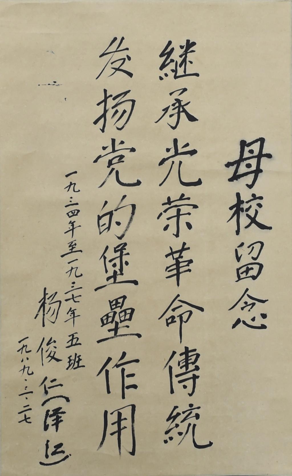 1989年3月,杨泽江到母校视察并题词:“继承光荣革命传统,发扬党的堡垒作用”。