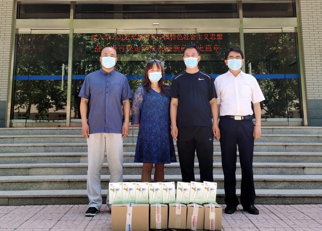 5月28日上午,保定卫春餐饮管理有限公司、保定净菜园餐饮服务有限公司的企业负责人来到我校,捐赠了价值7000余元的测温枪,助力我校做好毕业生返校工作。
