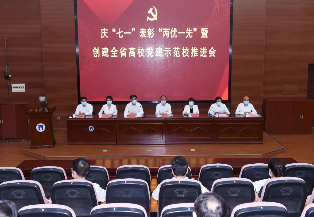 6月29日下午,在建党99周年即将到来之际,我校在昌绪学术厅召开庆“七一”表彰“两优一先”暨创建全省高校党建示范校推进会。校领导胡连利、韩会玲、刘清波、徐景星、马丽娟、孙斌、赵其国,校党委、校纪委委员和不是“两委”委员的中层正职干部在现场出席会议。全体中层副职干部,各党总支、直属党支部和教师、学生党支部委员在线上参加会议。会议由校党委副书记刘清波主持。