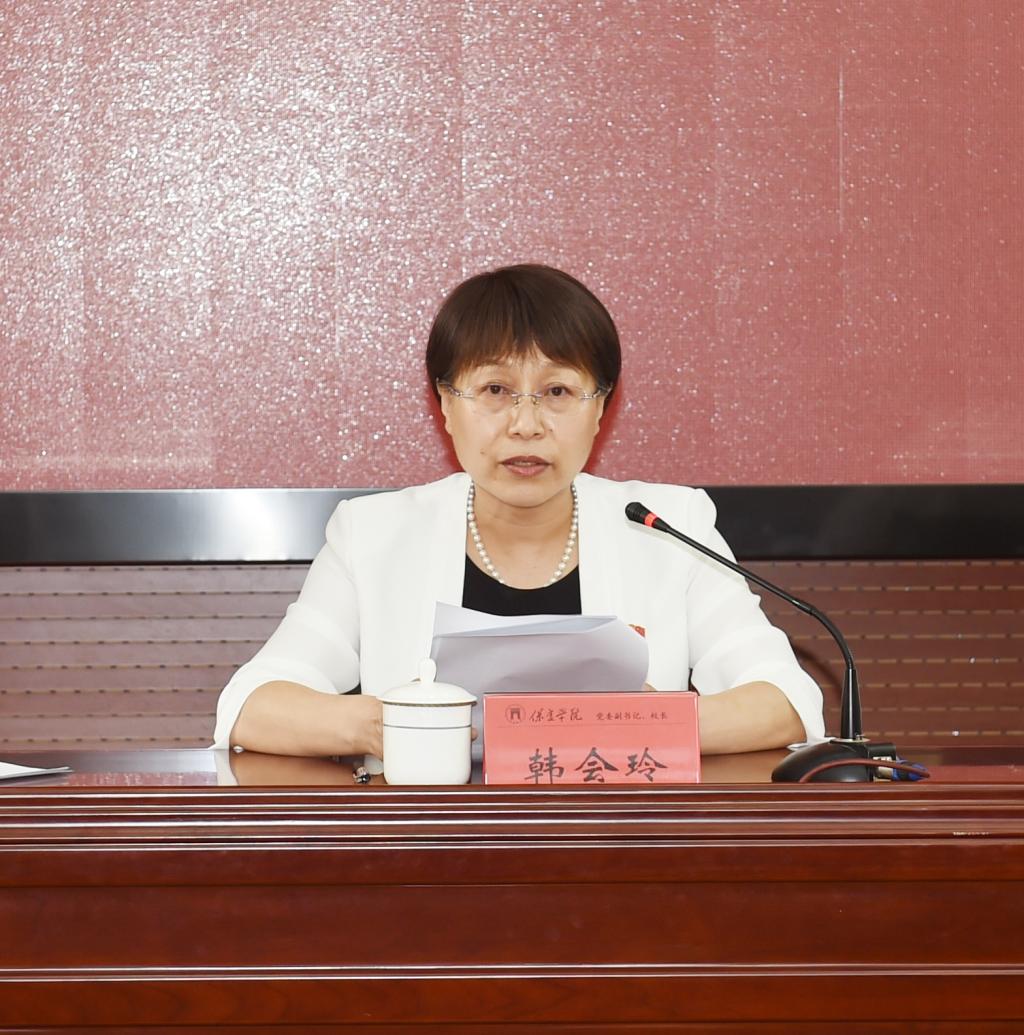 校党委副书记、校长韩会玲在会上讲话。她指出,这次会议旨在总结分析去年以来我校创建河北省新时代党建工作示范高校工作情况,进一步明确创建任务和工作举措,扎实推进创建工作,确保高质量实现创建目标。她重点讲了三个方面的意见。一是创建工作的简要回顾和存在的主要问题。通过全校上下的共同努力,我校已初步形成了党建示范校创建的系列成果,涌现了一批围绕中心抓党建,抓好党建促发展的先进典型,二级学院党组织的政治引领作用更加强化,党建与业务工作的融合不断深入,党员扛硬活、干在前、做表率的作用进一步凸显。同时要清醒地看到,还存在有的制度执行不够到位等三个方面的差距。二是突出特色,注重实效,进一步提升创建工作水平。要紧紧围绕总体要求抓创建,进一步明确目标任务;紧紧围绕引领发展抓创建,深化实化创建工作;紧紧围绕解决问题抓创建,着力提升短板弱项;紧紧围绕特色亮点抓创建,积累创建成果。三是强化责任,加大力度,确保各项工作落实到位。要做到组织领导到位;督导交流到位;总结提炼到位;支持保障到位。