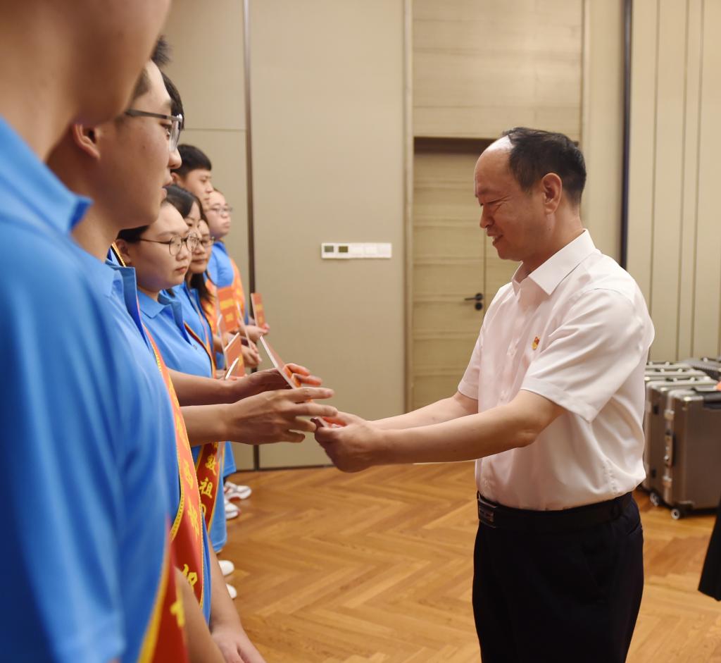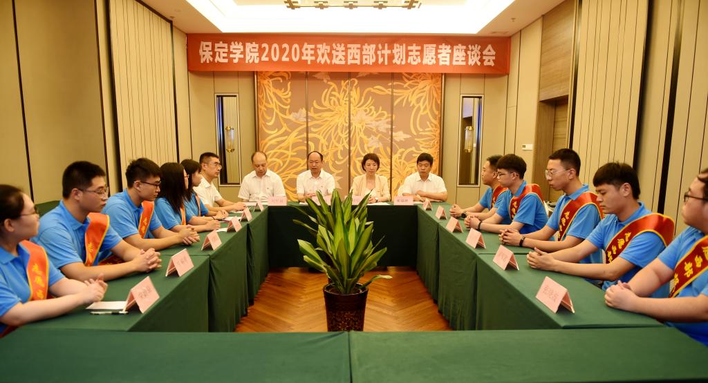 7月18日,赴河北电视台录制“‘燕赵楷模·时代新人’发布厅”专题节目的间隙,我校在石家庄举行了欢送2020年西部计划志愿者座谈会。校党委书记胡连利,党委常委、副校长马丽娟,党委宣传部、团委、学报编辑部负责同志和10位即将奔赴祖国西部志愿服务的毕业生参加了座谈会。