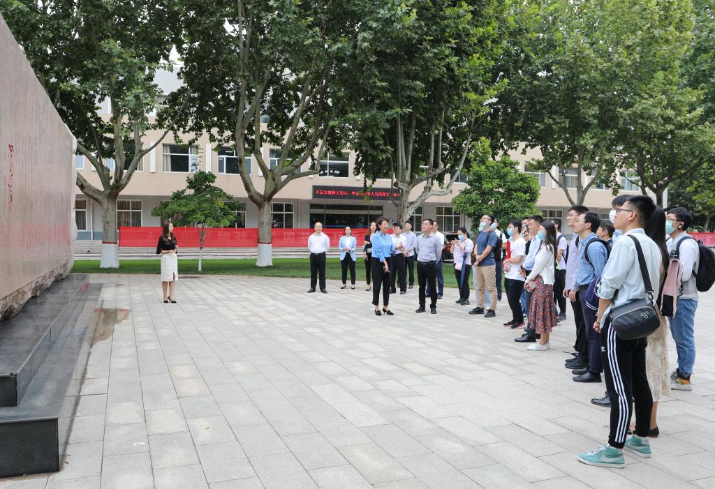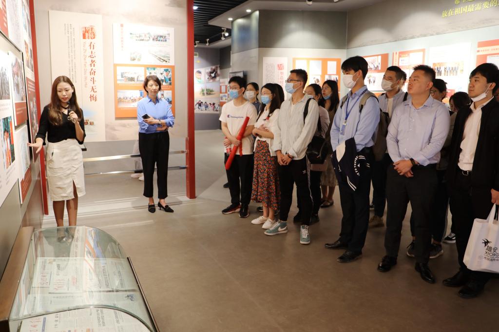 9月12日上午,“学习支教精神 勇担青春使命 建设美丽雄安”雄安青年学习交流活动在我校举行。雄安集团团委书记侯润带领30余名雄安青年实地学习重温习近平总书记给我校西部支教毕业生群体代表回信精神。党委常委、副校长马丽娟出席活动。