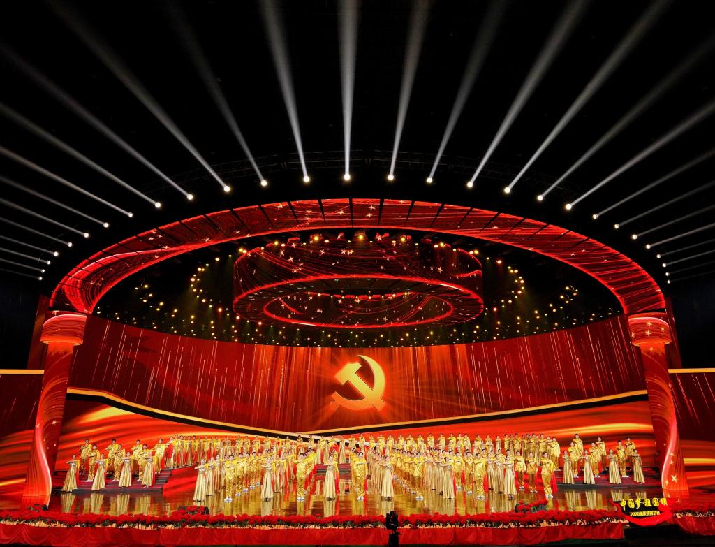 在《奋进新时代》《好儿好女好家园》《风雨无阻向前进》《前进吧,中国共产党》《复兴的力量》《在你伟大的怀抱里》等节目中,我校音乐舞蹈学院学生以精彩的表演营造热烈祥和的节日氛围,致敬抗疫、抗洪英雄,展现脱贫攻坚伟大成果,传承家国情怀,弘扬中国精神。