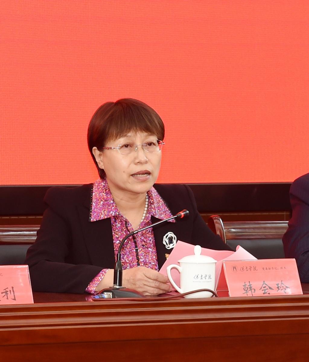 党委副书记、校长韩会玲以《聚力内涵式发展,实现高质量提升》为题发表了讲话。韩会玲通过对国际国内高等教育形势的分析和研判,强调重视质量、重视人才培养已成为世界高等教育的共识和趋势,特别是在中国特色社会主义进入新时代背景下,内涵式发展是当前我国高等教育发展的核心理念,走内涵式发展道路是中国特色社会主义高等教育发展的必然趋势。她明确了学校创新人才培养模式,全面实施质量提升工程的任务目标:一是健全“三全育人”工作体系;二是持续加强教育教学基本建设;三是深入推进产教融合、校企合作;四是进一步深化创新创业教育;五是持续提升师资队伍整体水平;六是全面加强就业工作;七是全面推进质量文化建设。对于教育部专家进校考查小学教育专业认证工作,韩会玲要求:进一步统一思想,迅速进入迎评状态,集中力量做好专家进校考查的各项准备工作;进一步统一要求,准确把握本部门工作任务,完善重点环节,对迎评工作再进行一次全面、彻底、严格的检查和梳理;进一步统一行动,做到指令传达及时到位、落实要求不打折扣、工作质量“严”字当头,确保课堂教学效果和教学质量,以最佳的精神面貌和扎实过硬的工作质量,高质量通过小学教育专业认证。