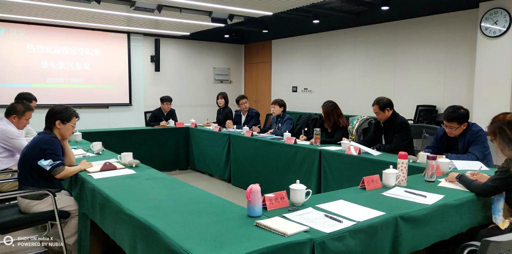 韩会玲一行考察了雄安新区市民服务中心、雄安新区政务服务中心、京雄科技园,并与雄安新区公共服务局、雄安新区政务服务中心、京雄集团有关领导就校企、校地合作开办政务管理与服务订单班、设立政务管理与服务专业等事宜进行了座谈交流。