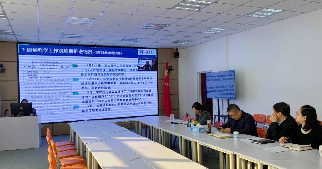 项目负责人汇报了2018-2020年科学工作能力提升计划(百千万工程)项目的基地建设、师资培训、初步成果、发展思路,展示了我校师生在保定学院圆通科学工作站的实训视频。