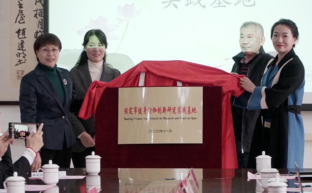 韩会玲、李怡青共同为“保定市健身瑜伽创新研究实践基地”揭牌。