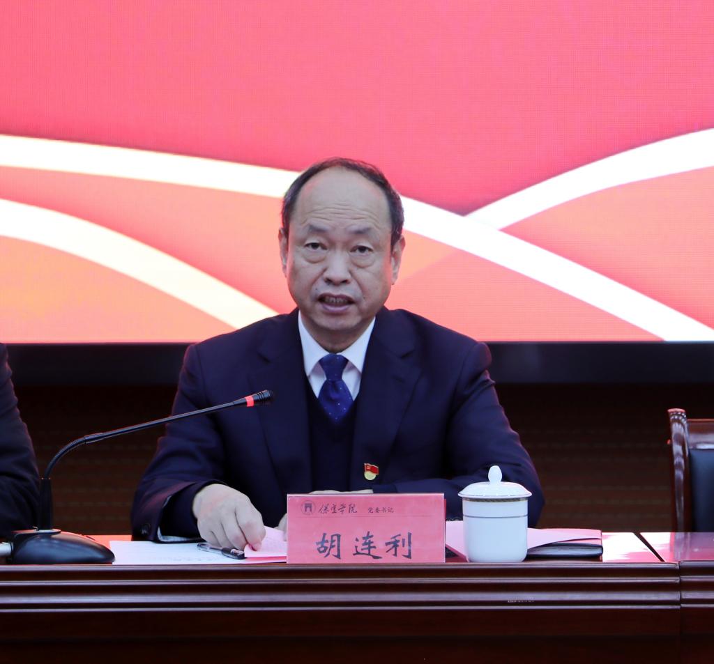 党委书记胡连利在仪式上讲话。他介绍了我校师生通过“学习强国”平台学习进步和奋斗追梦的情况,同时指出,“学习强国”提供了一个讲好保定学院故事、传播青春正能量的舞台。今年以来,有关我校的新闻和我校拍摄制作的专题片,频频登上“学习强国”全国总平台和河北平台,让保定学院成为了一块新时代的精神高地。创立于2019年11月的我校“学习强国”放映厅更是成为了大学生思政教育的新载体,开创了视觉思政的新模式。我校“学习强国”学研会的成立,为建设学习型校园、培养学习型人才增添了新阵地。为确实做到以“进校园”为牵引、以“进课程”为链接、以“进教材”为传播、以“进头脑”为目标,使“学习强国”“四进”工程落地落实,胡连利讲了三点意见:一要通过“四进”工程推动马克思主义学习型政党建设;二要通过“四进”工程提升学习能力和工作能力;三要通过“四进”工程提升育人质量。