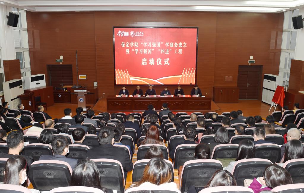 11月18日下午,我校在昌绪学术厅举办“学习强国”学研会成立暨“学习强国”“四进”工程启动仪式。保定市委宣传部四级调研员侯燚、市委宣传部办公室主任刘立宝,我校领导胡连利、韩会玲、刘清波、汤志江,各党总支书记、副书记,直属支部书记,有关部门负责同志,马克思主义学院教师代表,全体辅导员,“学习强国”学研会学员、“习近平新时代中国特色社会主义思想学研会”学员、校史馆讲解团和校报记者团成员参加仪式。