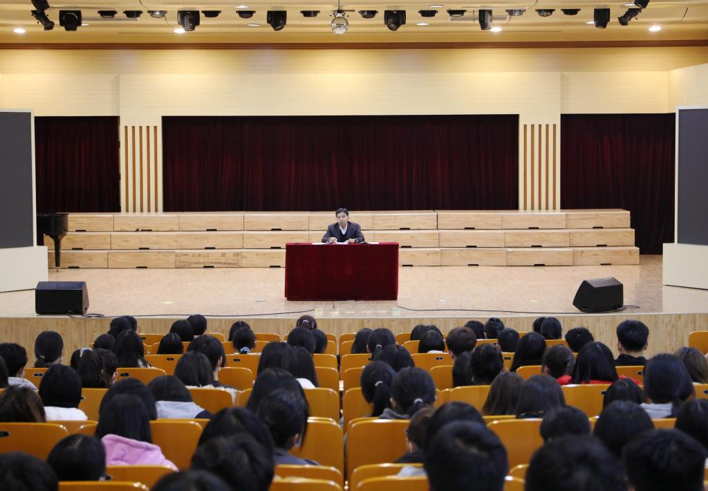 11月18日下午,党委常委、副校长徐景星在音乐厅为商贸物流学院、生物化工与环境工程学院260余名学生上了一堂题为《奋进新时代 开启新征程 汇聚新力量 创造新明天》的思政课。