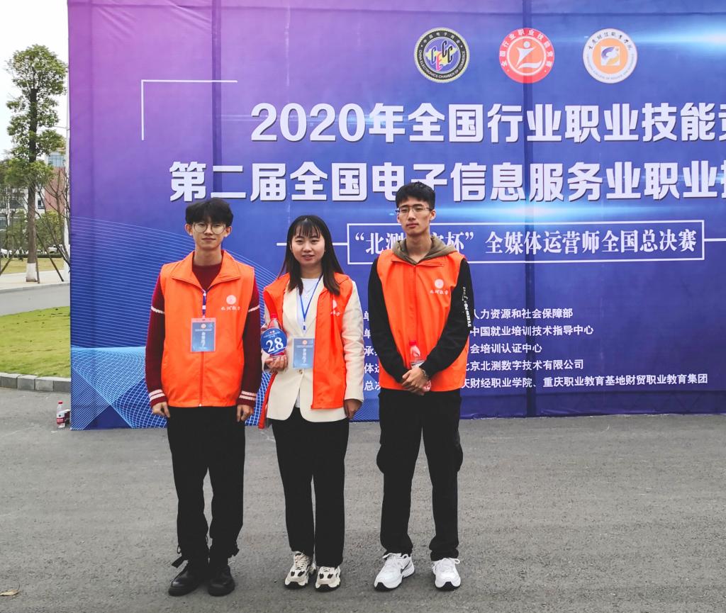 11月20日至21日,2020年全国行业职业技能竞赛第二届全国电子信息服务业职业技能竞赛“北测数字杯”全媒体运营师全国总决赛在重庆举行,经过激烈角逐,由信息工程学院学生李冰冰、杨凯博,数据科学与软件工程学院学生尹浛氿组成的我校代表队(指导老师:王倩 马笑楠)荣获大赛三等奖。