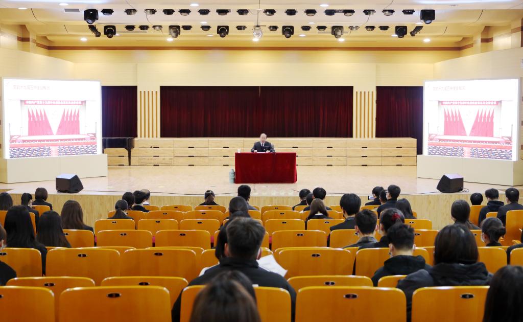 12月5日,党委书记胡连利在面向音乐舞蹈学院、马克思主义学院师生的宣讲会上,系统阐述了党的十九届五中全会召开的重大意义、2035年远景目标和“十四五”时期主要目标任务,详细讲解了河北省、保定市“十三五”时期经济社会发展情况及“十四五”发展目标,并从思想引领、教育教学、服务社会等方面总结了我校“十三五”时期的建设成绩。他强调,实现2035年远景目标必须坚持党的全面领导,要深刻认识我国进入新发展阶段的重大意义和重要特征。国家发展建设的宏伟蓝图已经划定,需要我们每个人坚定奋斗去实现。作为新时代的大学生,同学们要做爱国敬业、理想坚定、求真务实、善于学习、勇于实践的时代新人,为全面建设社会主义现代化国家和实现中华民族伟大复兴的中国梦贡献力量。