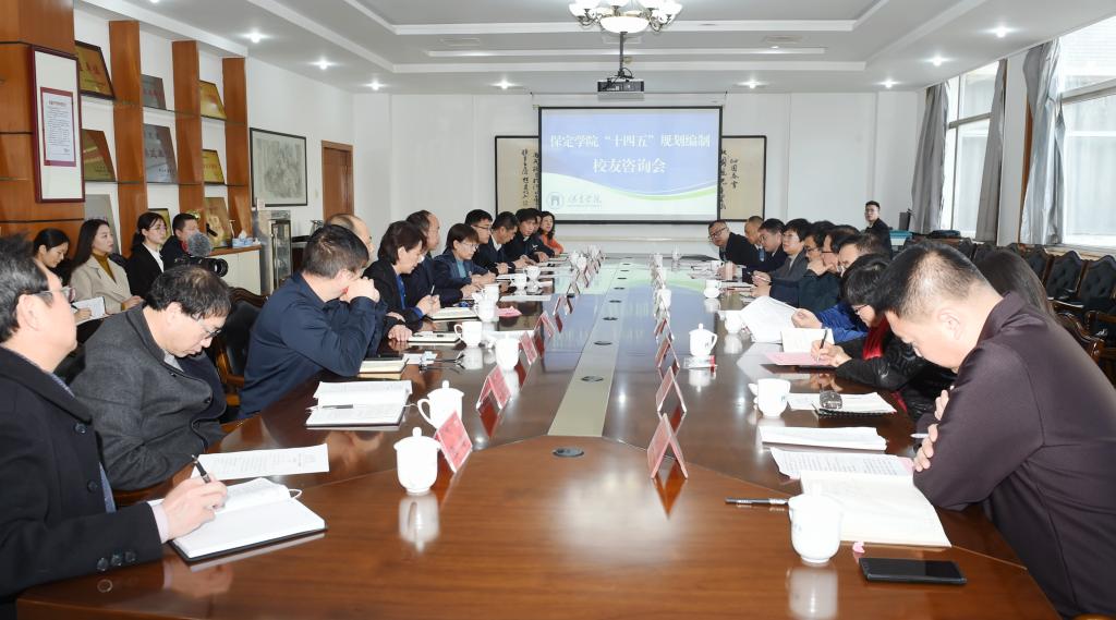 12月19日上午,保定学院“十四五”规划编制校友咨询会在行政楼第二会议室举行。会议邀请雄安新区公共服务局副局长张双龙,保定外国语学校校长杨晋生,容城县人民政府副县长田素宁,漆谷(北京)科技集团董事长王鹏,北京库尔科技有限公司总经理陈立柱,保定人大常委会研究室副主任苏少华,北京教育学院外语与国际教育学院国际课程研究中心主任王晓玲,安新中学副校长王凯,我校西部支教毕业生群体代表、新疆巴州且末县第一中学教师丁建新、李桂枝等十位优秀校友为学校“十四五”规划建言献策。