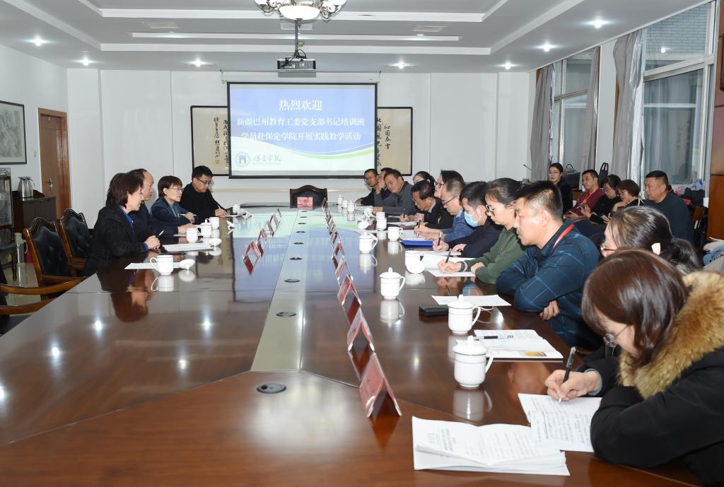 12月23日,新疆巴州党委教育工委副书记李冬玲带领巴州教育系统第二期党支部培训班24名学员来我校开展实践教学活动。河北省教育厅师范教育处三级主任白宪民、河北师范大学继续教育学院副院长杨丙振参加活动。