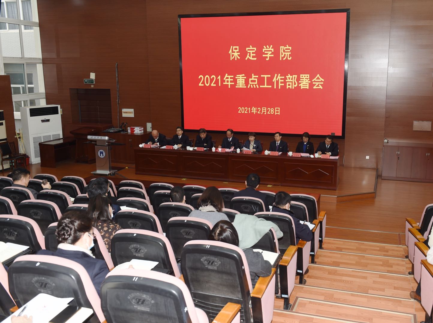 党委书记胡连利在会上作了题为《做好“四个坚持” 统筹推进高质量发展》的讲话。胡连利就扎实做好全年重点工作讲了四点意见:第一,坚持党的领导,提高政治站位。坚持党的全面领导对高校而言,就是要做到“六个必须”。一是必须以政治建设为统领,坚定不移践行“两个维护”。二是必须以思想建设为根本,持续强化理论武装。三是必须贯彻党管干部、党管人才原则,建设高素质干部队伍。四是必须以组织建设为基础,做好学校基层党建工作。五是必须以作风建设为抓手,切实树立新时代新作风。六是必须以纪律建设为保障,强化对党员干部的纪律约束。第二,坚持以人民为中心,践行初心使命。对于高校来说,以人民为中心不是一个抽象的概念,必须落实到办学实践中。“以人民为中心”明确了学校办学的战略抉择,明确了办好大学的依靠力量,明确了大学发展的价值取向,明确了大学内在的价值追求。第三,坚持遵规守纪,净化政治生态。全校党员干部,必须不断锤炼党性,自觉而坚决地遵守党规党纪。一是务必心存敬畏,在思想认识上将纪律规矩意识树起来。二是务必守牢底线,在工作生活中始终把纪律规矩挺在前面。三是务必握紧戒尺,在履职尽责中把纪律规矩严起来。第四,坚持统筹谋划,开启“十四五”新格局。面对“十四五”带来的新机遇、新挑战,要认真进行“四问”。一问“十四五”我们学校的历史定位、目标定项在哪里?二问每个阶段目标如何定层、定数,积累如何叠加?三问通往目标的阶梯、路径在哪里?四问每个人的价值坐标、贡献点在哪里?只有保定学院的每个人都进入发展角色、都承担发展义务、都贡献发展力量,保定学院才能如你所愿,拥有美好的未来。