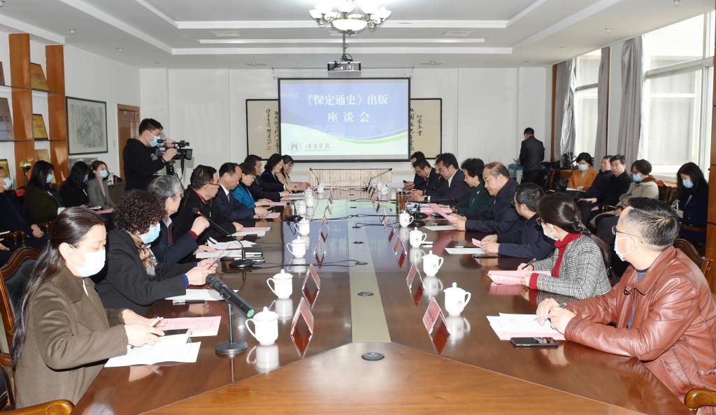 3月4日,《保定通史》出版座谈会在我校行政楼第二会议室举行。中共保定市委副书记闫继红,市人大常委会原主任、市地方志指导委员会主任马誉峰,中共保定市委常委、市政府常务副市长、市地方志编纂委员会副主任李国勇,河北省地方志编纂委员会办公室主任杨洪进,我校党委书记胡连利,党委副书记、校长韩会玲,党委常委、副校长赵其国,《保定通史》编写委员会成员、我校原党委书记王军,编写委员会其他成员及编写、审稿专家等50余人参加活动。
