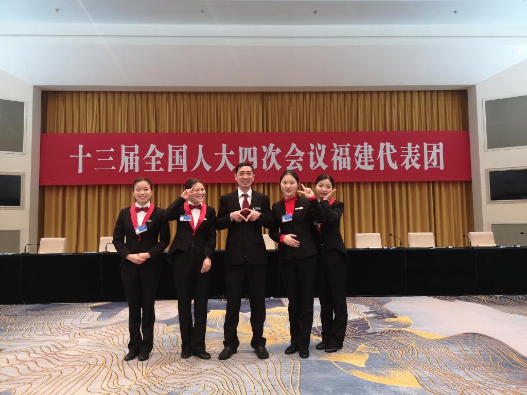 2020年年末,作为2021年全国“两会”驻地的西直门宾馆、友谊宾馆和好苑建国宾馆陆续向我校发来邀请,希望选派政治素质过硬、专业能力突出的学生参与完成接待任务。校党委高度重视,周密部署;地理与旅游学院迅速动员,认真落实,经过严格选拔,最终确定了106人的学生团队。为高标准完成此次任务,学生们于12月分赴驻地进行培训,春节期间也一直坚守在岗位上。“两会”召开后,他们严格执行制度规程,在安检、接待、客房、餐饮、康体等部门以扎实的专业技能、热情的工作态度,实现了优质高效服务,赢得了两会“代表”、驻地领导和工作人员的一致肯定。