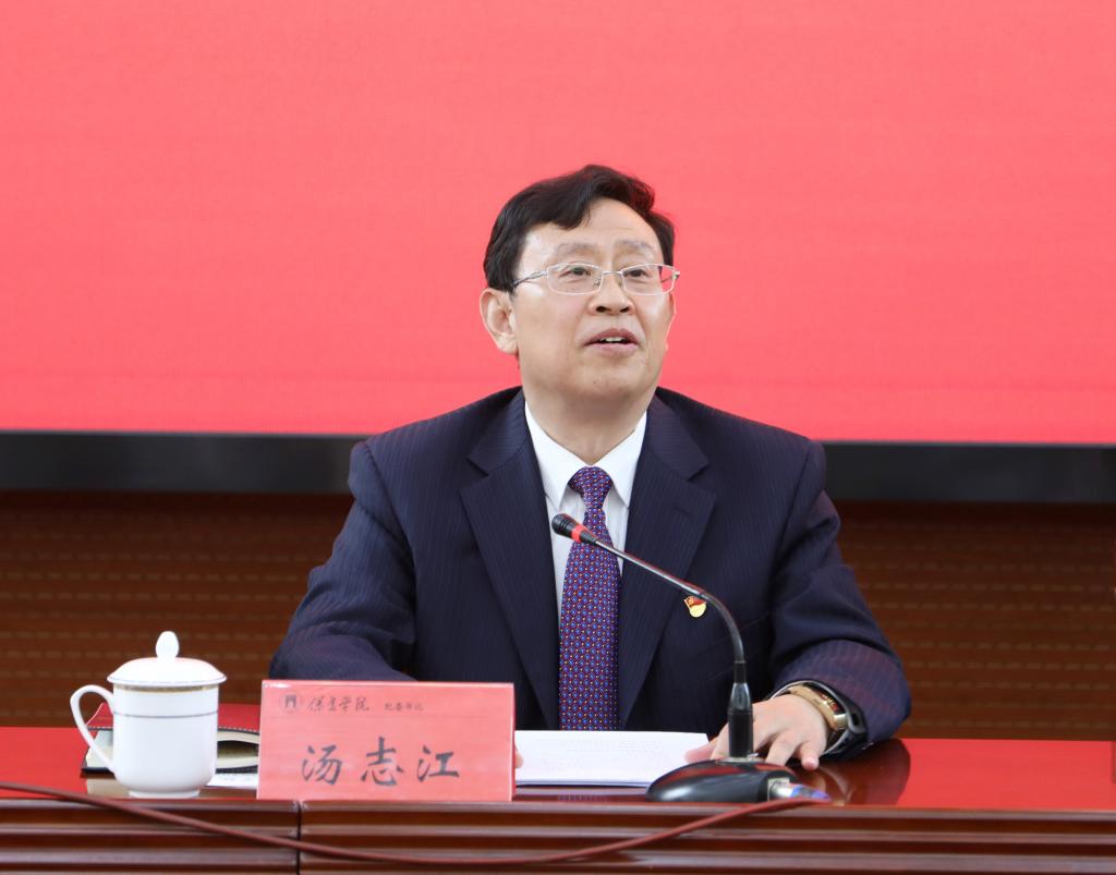 党委常委、纪委书记、监察专员汤志江传达了教育部、河北省教育厅、保定市教育局召开的全面从严治党会议精神,并就落实好学校2021年全面从严治党监督责任提出具体要求:要在强化政治保障上发力,护航学校“十四五”规划开好局、起好步;要在健全监督体系上加力,推动“两个责任”贯通联动、一体落实;要在落实巡视整改上用力,建立巡视整改长效机制;要在开展党史学习教育上助力,确保党史学习教育取得扎实成效;要在强化专项治理上聚力,不断增强党风廉政建设实效。