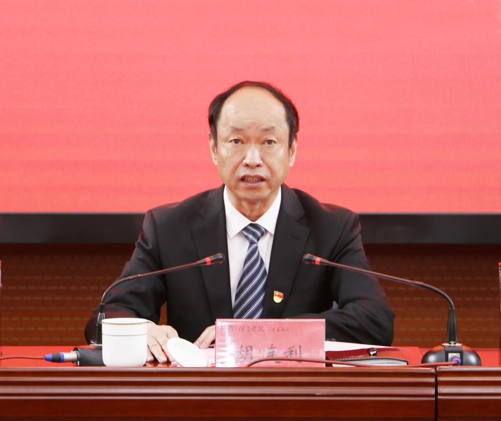 党委书记胡连利在会上作了题为《学思百年治党路 奋进时代新征程》的讲话。他首先指出本次会议的主题是:高举习近平新时代中国特色社会主义思想伟大旗帜,全面贯彻党的十九届五中全会、十九届中央纪委五次全会精神,深入推进党史学习教育活动,做到学史明理、学史增信、学史崇德、学史力行,对标省委巡视要求,进一步增强忠诚核心、维护核心、看齐核心的政治自觉和行动自觉,强化责任担当,坚定不移推进全面从严治党向纵深发展,为学校“十四五”开局攻坚提供坚强政治保障。胡连利重点讲了三点意见:一、全面从严治党是中国共产党百年奋斗的政治遵循。习近平总书记在党史学习教育动员大会上强调,勇于自我革命,是我们党最鲜明的品格,也是我们党最大的优势。总书记的讲话为开展党史学习教育明确了要求,也为加强党的建设、深化全面从严治党指明了方向。回眸百年奋斗征程,“党要管党、从严治党”这一宝贵政治财富,作为我们党一贯的政治遵循和致胜法宝,在中国革命和建设改革的历史进程中不断发展、完善。全面从严治党是我们党刀刃向内、刮骨疗毒的自我革命,是我们党永葆蓬勃生机的核心要义。二、全面从严治党是引领高校事业健康发展的政治方向。要切实做到“五个坚决”:坚决落实党史学习教育明理、增信、崇德、力行政治要求,坚决践行“两个维护”政治纪律,坚决贯彻“为党育人、为国育才”教育方针落地生根,坚决推进学校治理体系和治理能力现代化,坚决推进反腐败斗争不松劲。三、全面从严治党是建设高水平应用型大学的政治保障。各级党组织和广大党员干部要从讲党性、讲大局、讲发展的高度对标全面从严治党政治要求,围绕关键领域环节,强化责任担当,做到“六个聚焦”:一是聚焦学深悟透习近平新时代中国特色社会主义思想,夯实全面从严治党的思想基础;二是聚焦党的全面领导,巩固全面从严治党的政治基础;三是聚焦总书记回信精神,落实全面从严治党的政治使命;四是聚焦党风廉政建设,落实全面从严治党“两个责任”同频共振;五是聚焦干部队伍建设,夯实全面从严治党的组织基础;六是聚焦巡视反馈问题,强化责任落实和成果运用。