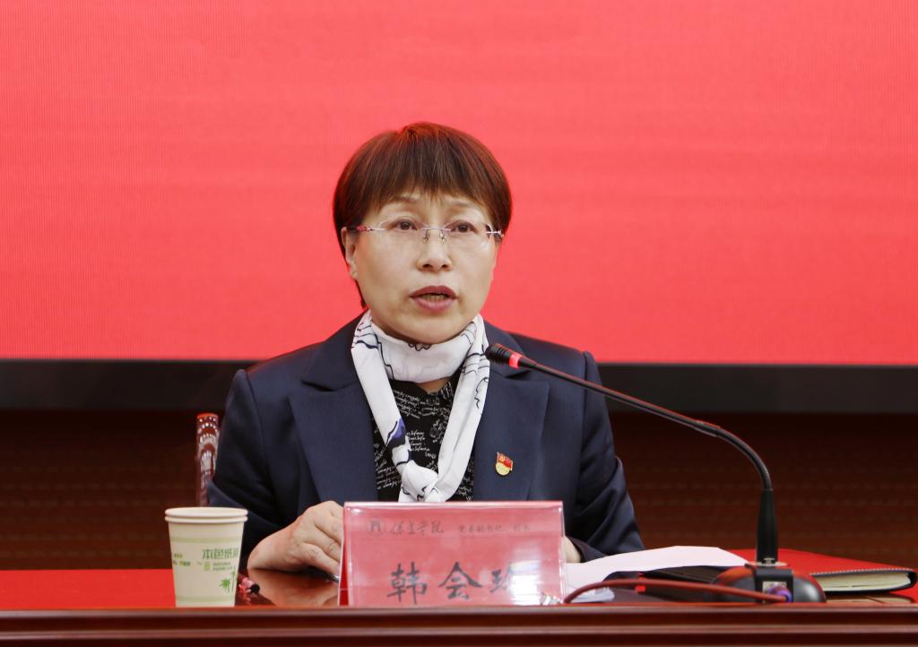 韩会玲强调,在全党开展党史学习教育,是以习近平同志为核心的党中央作出的一项重大决策,是党的政治生活中的一件大事,正当其时,十分必要。广大师生要把学习党史和学习新中国史、改革开放史、社会主义发展史相结合,树牢唯物史观,深刻理解把握马克思主义中国化理论成果特别是习近平新时代中国特色社会主义思想的科学性、真理性,不断提高政治判断力、政治感悟力、政治执行力,增强“四个意识”、坚定“四个自信”、做到“两个维护”。
