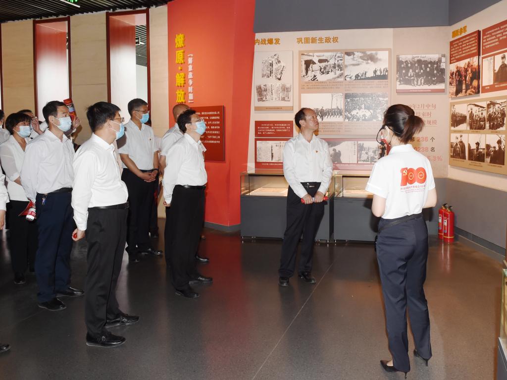 在纪念馆鲜红的党旗前,全体党员重温了入党誓词。党委书记胡连利在讲话中指出,我们必须在党史学习教育中坚定理想信念,筑牢共产党人安身立命的根本。他强调,坚定理想信念是守护中国共产党人的政治灵魂。今天我们来这里学习,就是要以先辈先烈为镜,不断筑牢信仰之基、补足精神之钙、把稳思想之舵,以坚定的理想信念砥砺对党的赤诚忠心。坚定理想信念是推动党的事业不断前进的重要法宝。走好新时代的长征路,在百年未有之大变局中把准航向,需要牢牢抓住坚定理想信念这个重要法宝,把党的历史学习好、总结好,把党的成功经验传承好、发扬好。坚定理想信念是落实立德树人根本任务的政治保障。我们要从党和国家事业发展全局高度,坚守为党育人、为国育才,把立德树人融入思想道德教育、文化知识教育、社会实践教育各环节,体现在学科体系、教学体系、教材体系、管理体系建设各方面,大力培养符合时代要求、德智体美劳全面发展的社会主义合格建设者和可靠接班人。