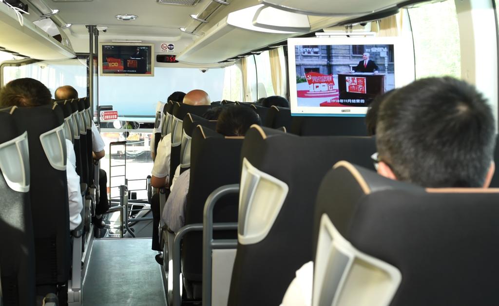 即使在往返途中,党员同志们也没有松懈,认真观看《党史故事100讲》系列视频,把大巴车变成了移动的“党史学堂”。