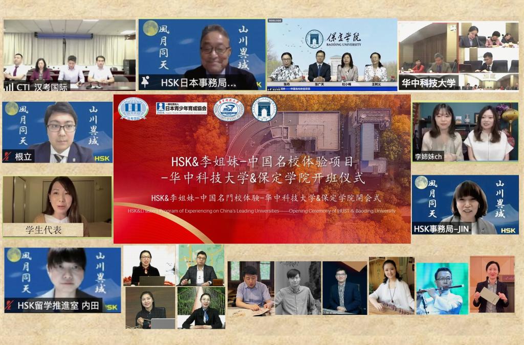 5月27日,我校与汉考国际、华中科技大学、日本青少年育成协会、“李姐妹”频道自媒体平台合作举办的“HSK&李姐妹·中国名校体验项目——华中科技大学&保定学院”线上开班仪式举行。