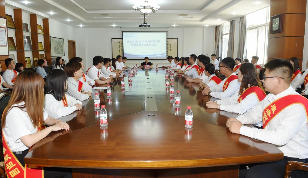 6月19日,我校在行政楼第二会议室举行欢送2021年服务西部、基层就业毕业生座谈会。党委副书记、校长韩会玲,党委副书记刘清波,党委常委、副校长徐景星,团委、学生处相关人员和34名服务西部、基层就业的毕业生代表参加座谈会。