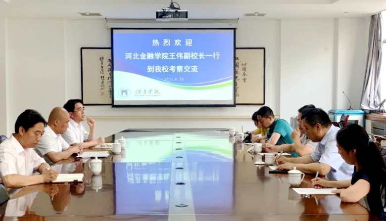 6月25下午,河北金融学院副校长王伟一行来我校考察交流。党委常委、副校长孙斌及后勤管理处负责同志在行政楼第二会议室与王伟一行进行座谈交流。