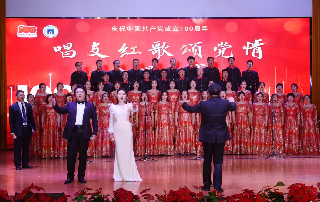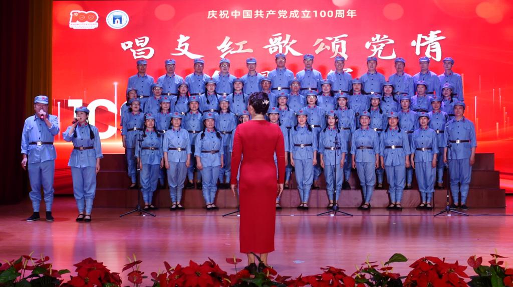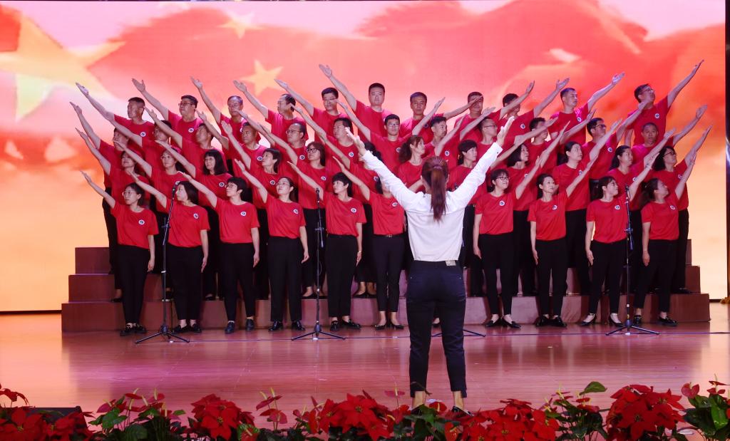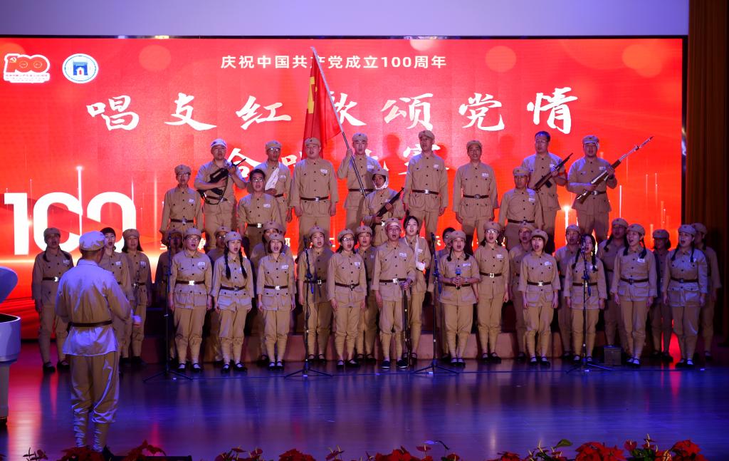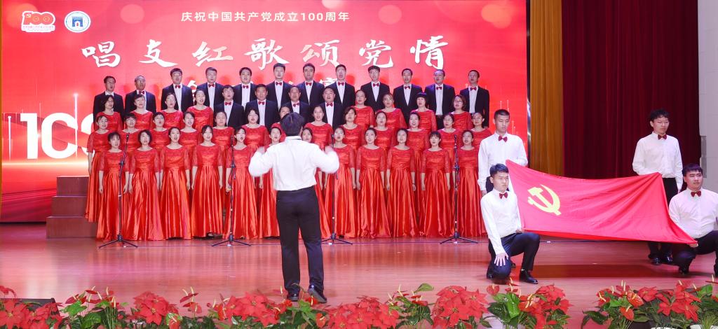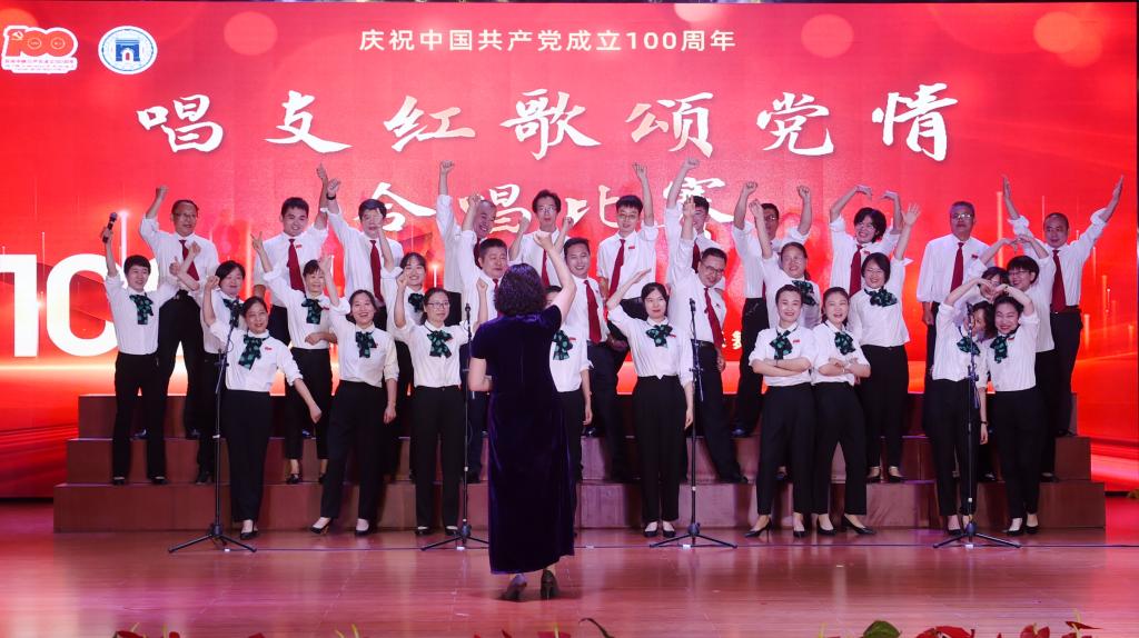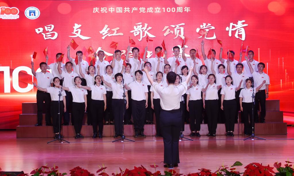最后,全体教职工共同唱响《没有共产党就没有新中国》,活动现场歌声嘹亮、旗帜飞扬,展现出庆祝中国共产党成立100周年的热烈氛围。