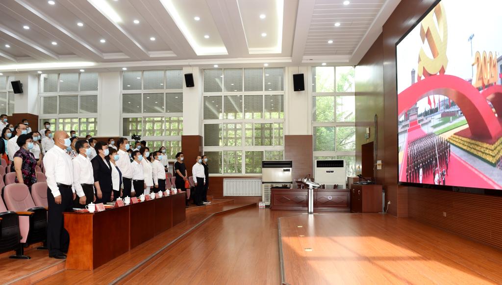 7月1日上午,根据市委统一安排,党委书记胡连利在市级主会场收看庆祝中国共产党成立一百周年大会,其他校领导韩会玲、刘清波、张晓梅、汤志江、徐景星、马丽娟、孙斌、赵其国,全体中层干部、马克思主义学院全体教师、各二级学院教师党支部和学生党支部书记在昌绪学术厅集体收看了庆祝中国共产党成立一百周年大会盛况。