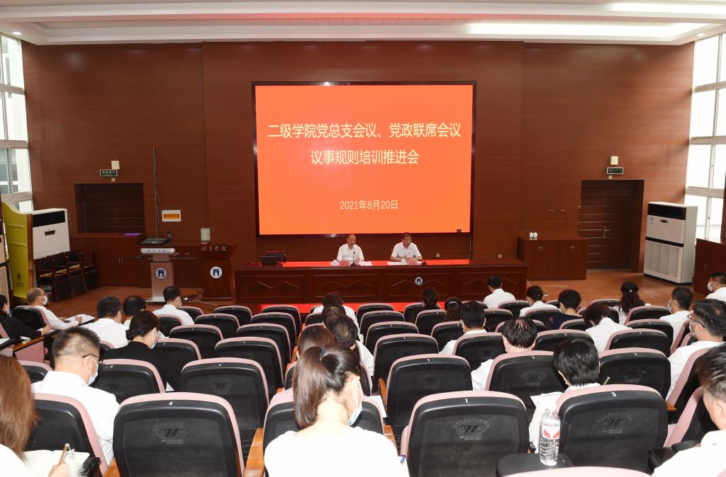 党委组织部负责同志就两个《议事规则》的意义、内容、程序等做了解读培训。文学院负责同志进行了实例展示。