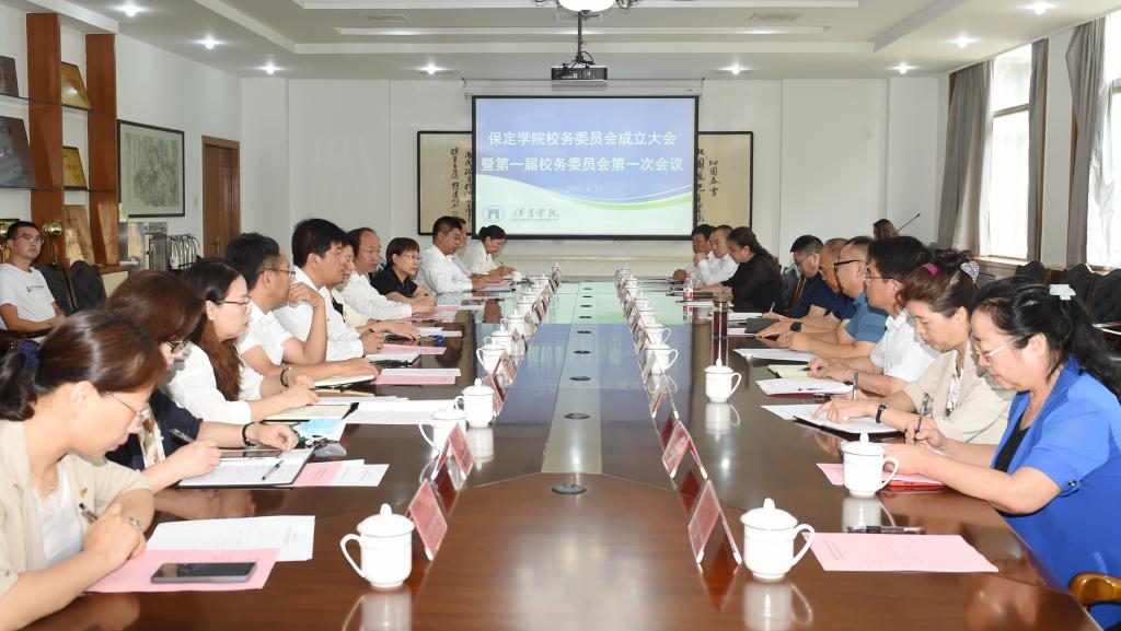 9月11日上午,保定学院校务委员会成立大会暨第一届校务委员会第一次会议在我校行政楼第二会议室召开。我校原党委书记王军,保定市政府原副秘书长、京津冀协同办主任杨军,漆谷(北京)科技集团董事长王鹏,北京库尔科技有限公司总经理陈立柱,我校党委书记胡连利,党委副书记、校长韩会玲,党委常委、副校长马丽娟以及校务委员会全体成员参加会议。