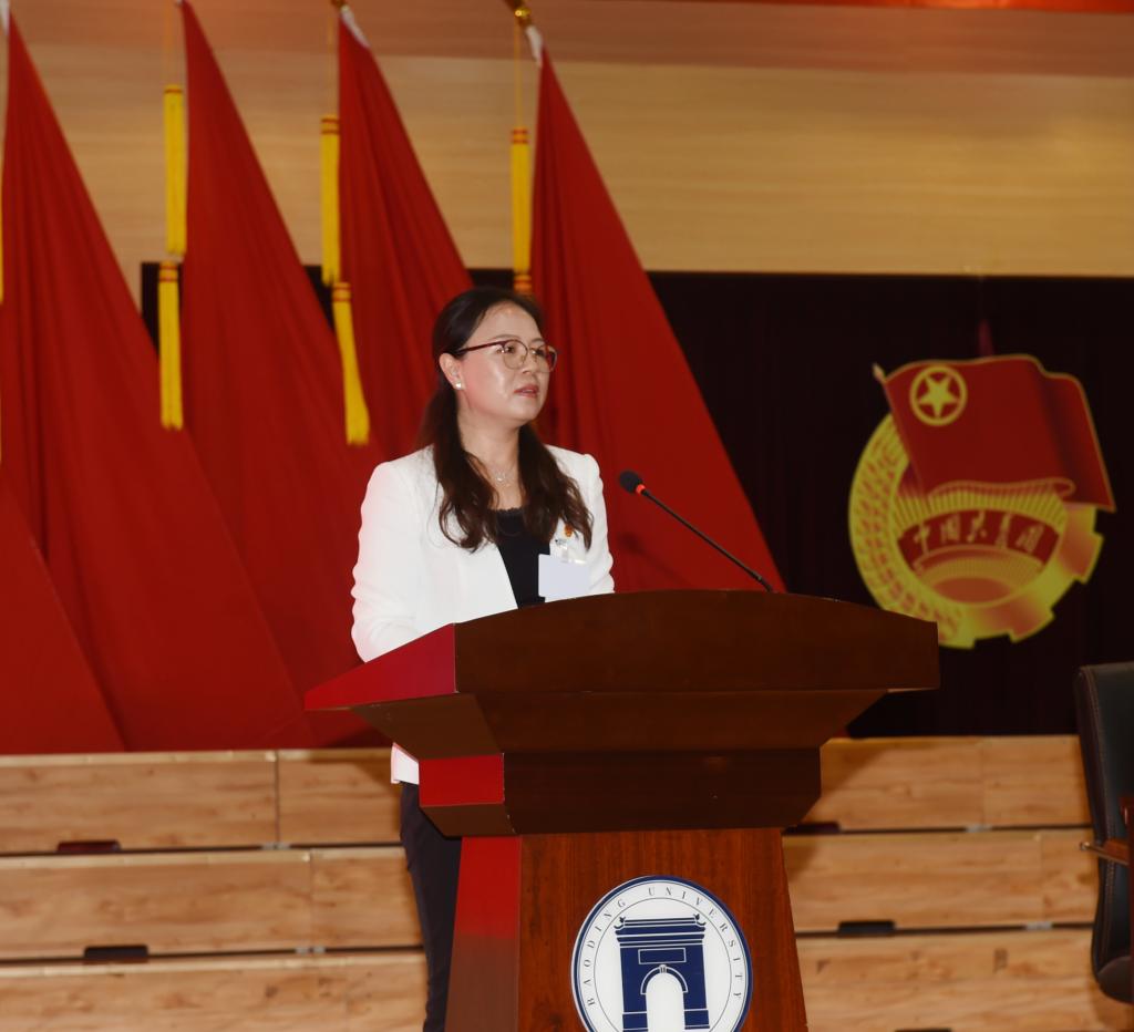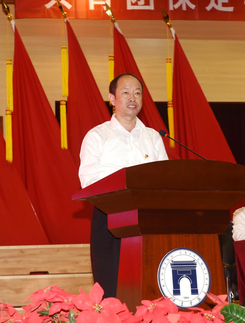 我校工会主席安程辉、河北大学团委书记李卫森分别代表群团组织和兄弟院校向大会致辞。