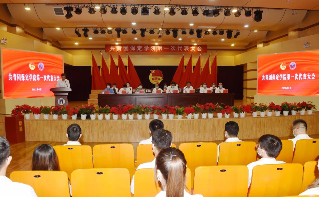 9月14日上午,共青团保定学院第一次代表大会在阎肃音乐厅胜利召开。团市委书记葛新,校领导胡连利、韩会玲、刘清波、汤志江、徐景星、马丽娟、孙斌,我校工会、学生工作部负责同志和驻保高校团委书记在主席台就坐。155名团学代表参加大会。大会开幕式由党委副书记刘清波主持。