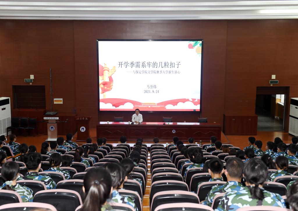 “同学们,让文学照亮人生,曾是我这个老兵在学生时代最大的梦想……今天,我想赠给你们三句话,也是在开学季想帮助你们系牢的‘几粒扣子’——恒心、自律、珍惜。”9月24日,北京军区政治部原副主任、军区善后办原副政委、我校文学院名誉院长马誉炜将军在昌绪学术厅做专题报告。校领导韩会玲、马丽娟、赵其国,文学院负责同志、教师代表和200余名新生共同聆听报告。