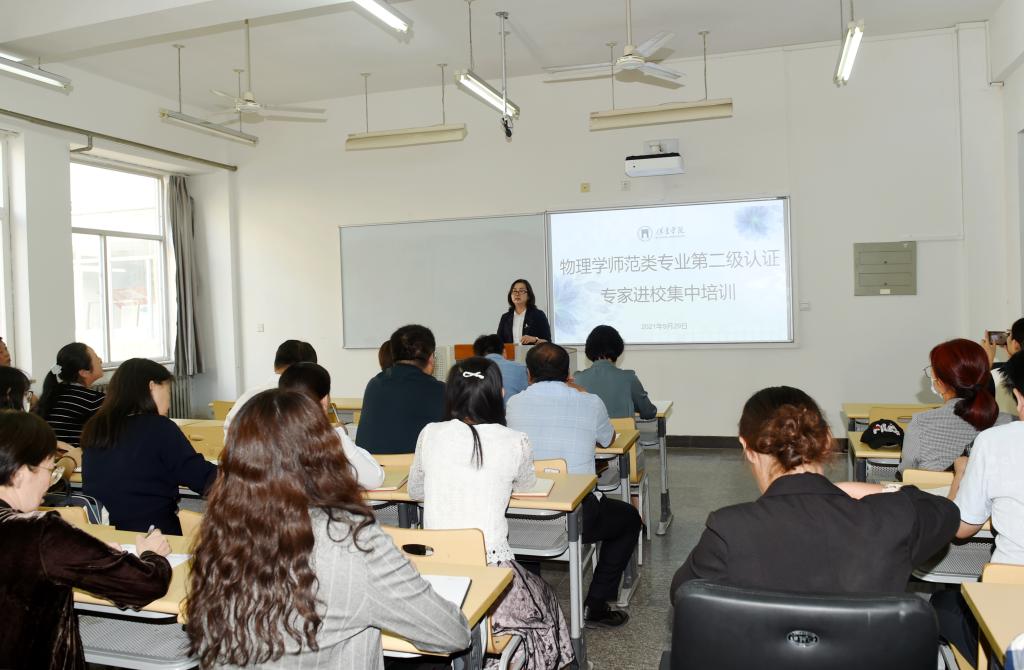 9月29日下午,我校教务处组织开展物理学师范类专业第二级认证专家进校集中培训。党委副书记、校长韩会玲,党委常委、副校长马丽娟出席会议,教务处、实验实训中心负责同志、教育教学质量管理中心相关工作人员、汽车与电子工程学院全体教师、我校各师范专业负责人参加培训。