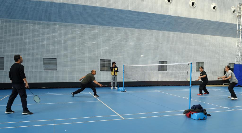 在参赛队员的期待中,刘清波宣布羽毛球比赛正式开始。
