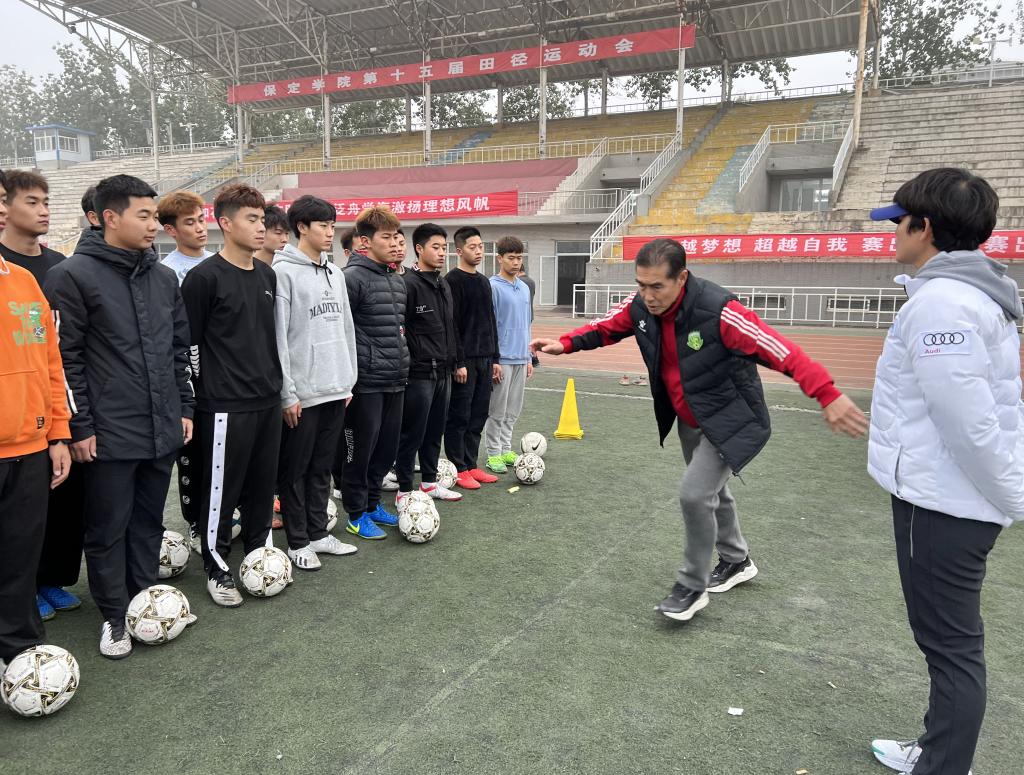 期间,王海鸣来到体育场为学生们上了一堂特别的足球训练课。他耐心指导大家的技术动作,并用亲身经历鼓励大家练好基本功,加强学习,不畏困难,勇于拼搏。