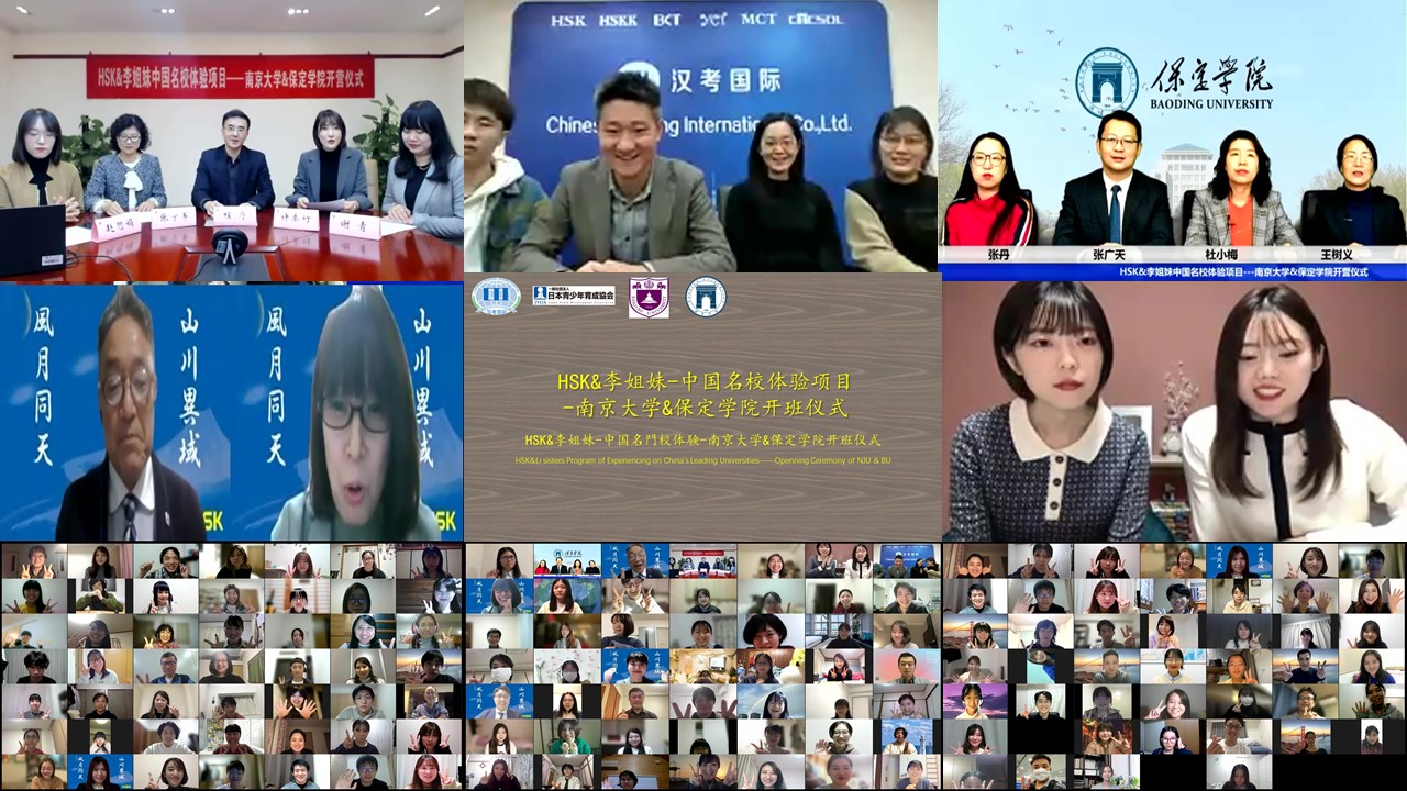 11月9日,我校与汉考国际教育科技(北京)有限公司、南京大学、日本青少年育成协会、“李姐妹”频道自媒体平台合作举办的“HSK&李姐妹·中国名校体验项目——南京大学&保定学院”开班仪式在线上举行。中日双方相关负责人、HSK日本代言人李姐妹、授课教师和120名日本学生参加开班仪式。